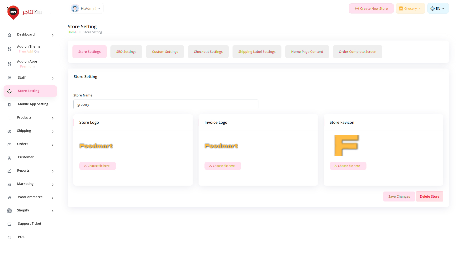 متجر التجارة الإلكترونية مع موضوع متعدد ومتجر متعدد