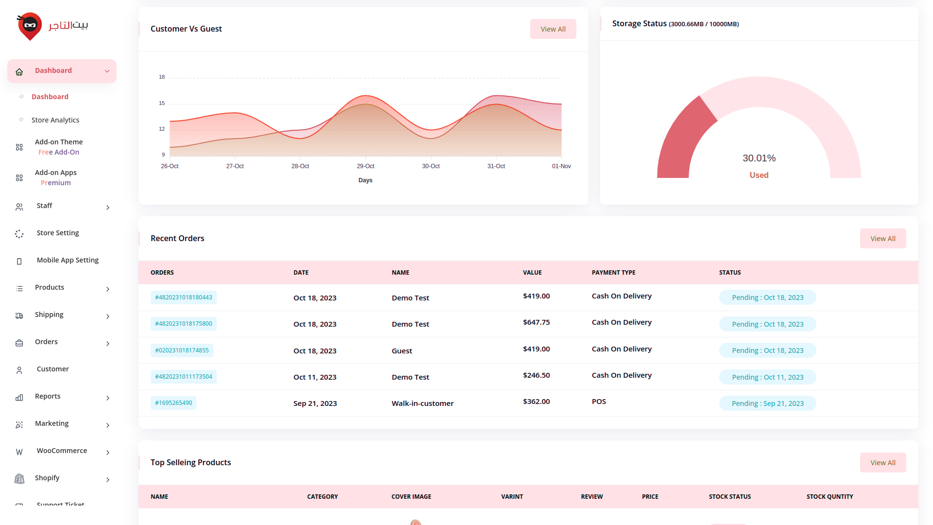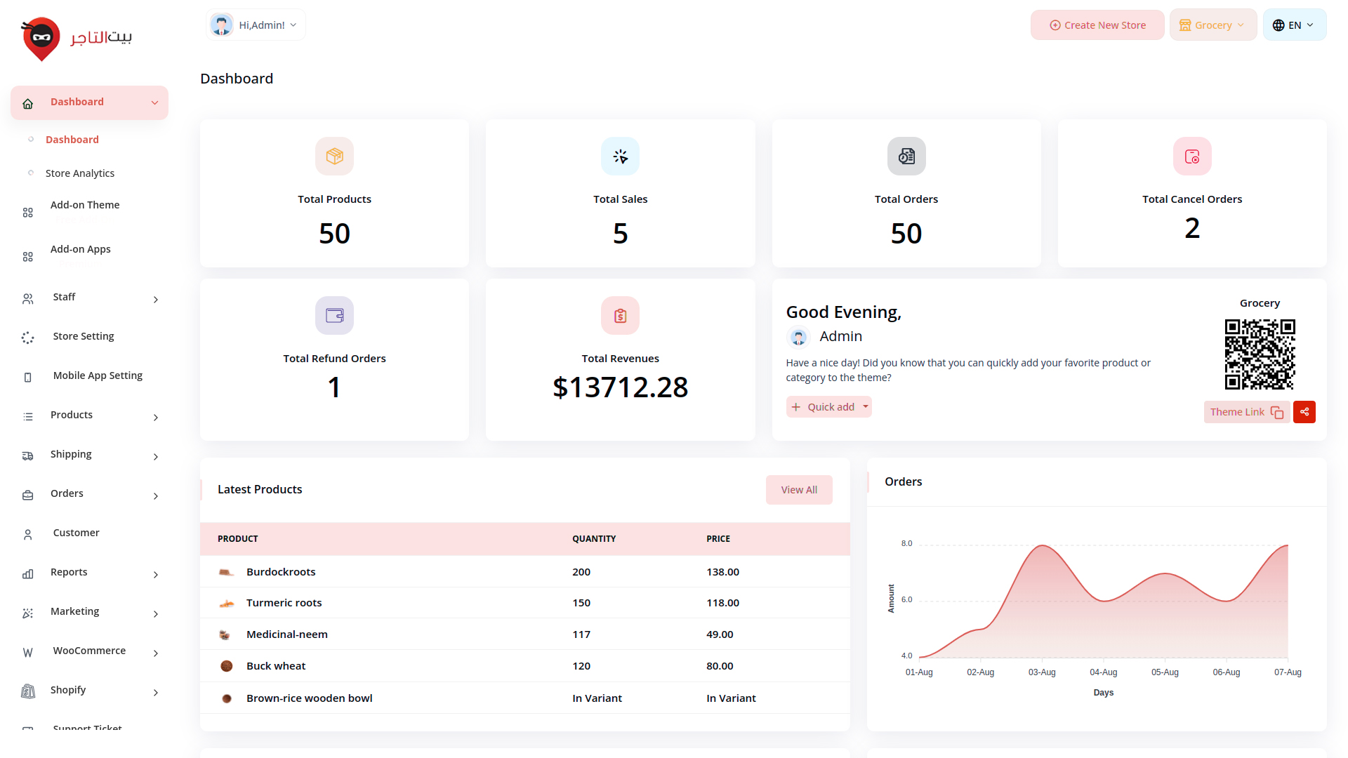 توفر لك حزمة للتجارة الإلكترونية "جاهزة للمبيعات". متجر آمن على الإنترنت. تجمع هذه الحزمة جميع العناصر الأساسية معًا، بدءًا من التصميم وحتى معالجة الدفع. يمنحك هذا السبق في مشروع التجارة الإلكترونية الخاص بك. يتم إنشاء كل متجر باستخدام إطار عمل PHP موثوق -laravel. يؤدي ذلك إلى تسريع عملية التطوير مع زيادة أمان المتجر وأدائه. بالإضافة إلى ذلك، بفضل تطبيق الهاتف المحمول المصاحب، يمكنك أنت وفريقك إدارة المتجر أثناء التنقل. علاوة على ذلك، نظرًا لأن التطبيق يناسبك أنت وعملائك، فيمكنك استخدامه للوصول إلى جمهور أوسع. وعلى عكس منصات التجارة الإلكترونية الشهيرة، فهو لا يلزمك بأي شروط وأحكام أو رسوم متكررة. يمكنك اختيار المكان الذي تستضيفه أو بوابة الدفع التي تستخدمها. وأخيرًا، يمكنك التحكم بشكل كامل في مظهر المتجر. وإذا كان يفتقر إلى أي وظائف تحتاجها، فما عليك سوى التواصل معنا ودعنا نناقش إمكانيات التخصيص.